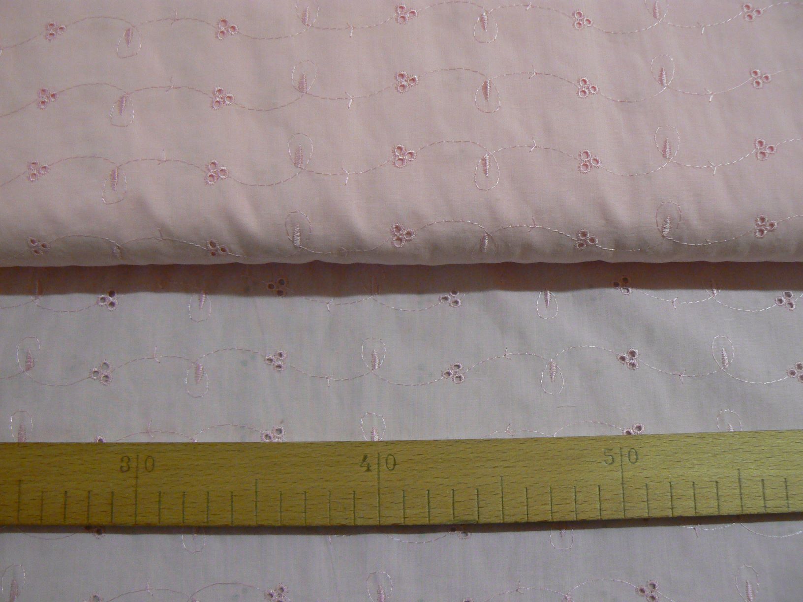 Jemná bavlněná látka, která má na sobě vyšívané květinky.