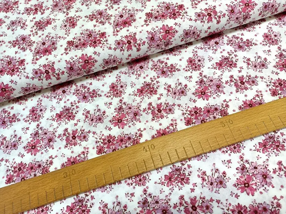 Růžové kytičky na bíléSkladem185,0 Kč/ m152,9 Kč bez DPH